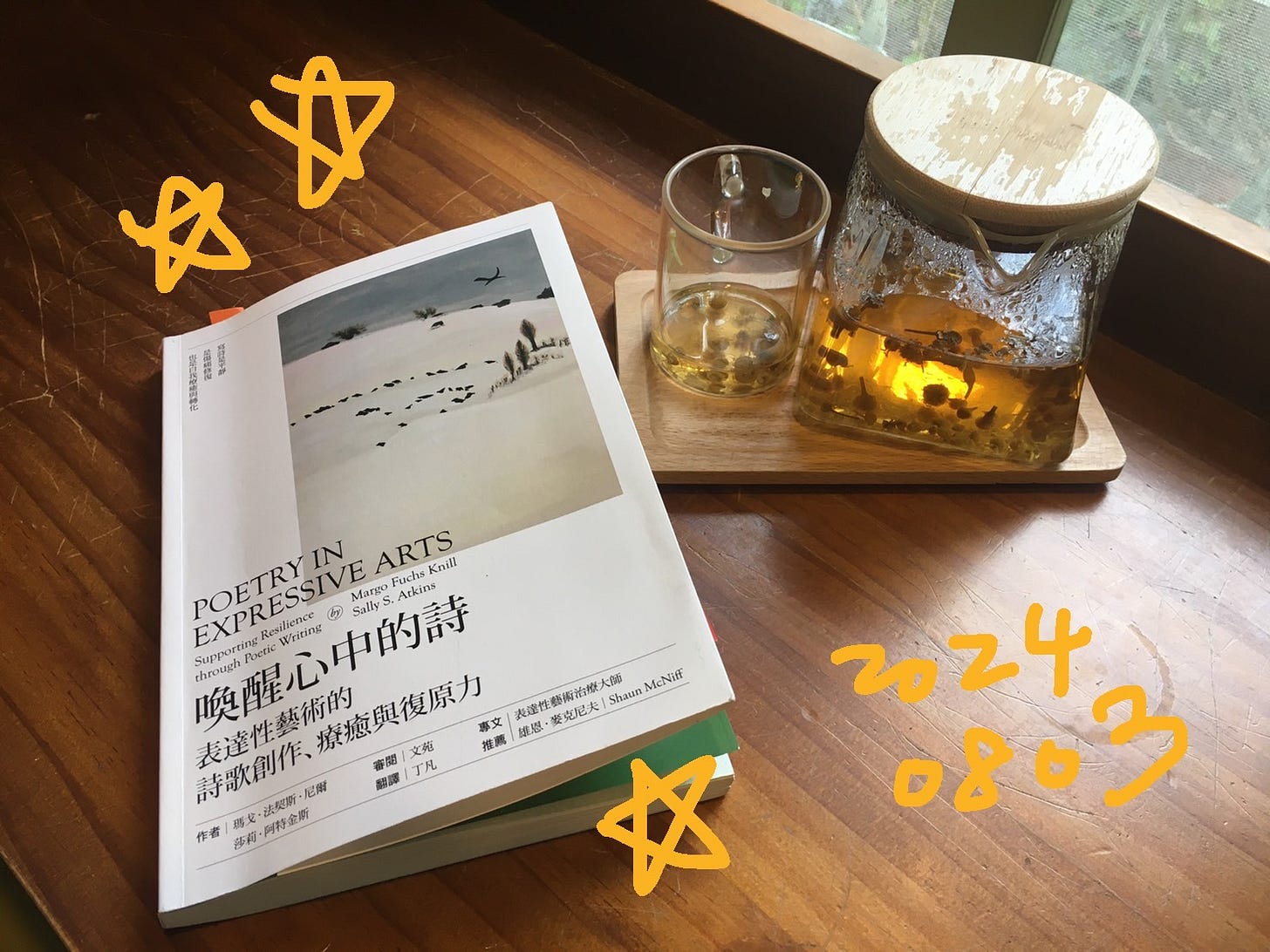 身為一個已經三、四年沒有寫詩的人,我昨天終於翻開了躺在書櫃已久的《喚醒心中的詩:表達性藝術的詩歌創作、療癒與復原力》。起因並非對詩歌的嚮往——我的「詩之心」沈睡已久——而是打算為八月中旬開始的「自由書寫工作坊」做一些準備。